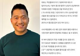 다른 직원들도 비슷한 내용을 공유하며 “법에 접촉되지 않는 선에서의 복지와 그걸로 생색내는 경영진”, “오랫동안 성실히 일한 직원을 소모품으로 생각하고 불만을 갖지 못하게 가스라이팅” 등의 경험을 털어놓았습니다. 이들은 “두 부부의 사생활 감시도 심하다. SNS로 직원들의 사생활을 검열하며 CCTV를 통해 수시로 직원들 감시”라며 “7~8년 다닌 직원들을 전화상으로 정리해고하기도 했다”고 말했습니다.